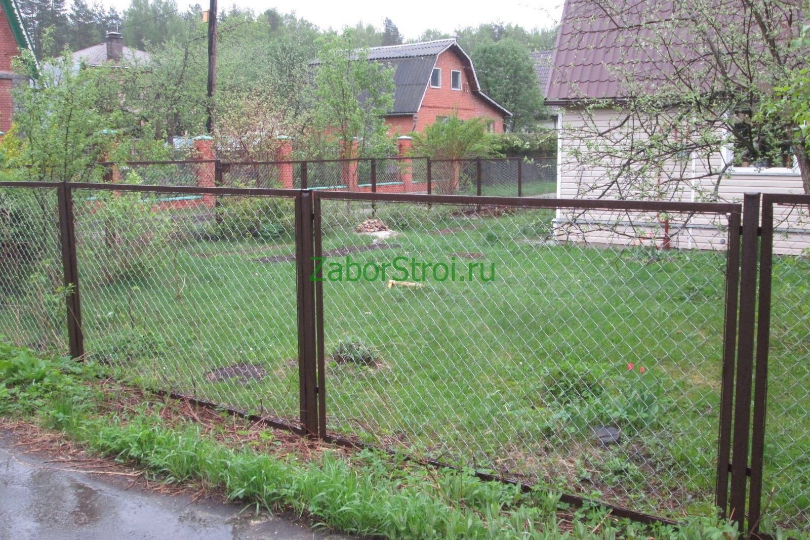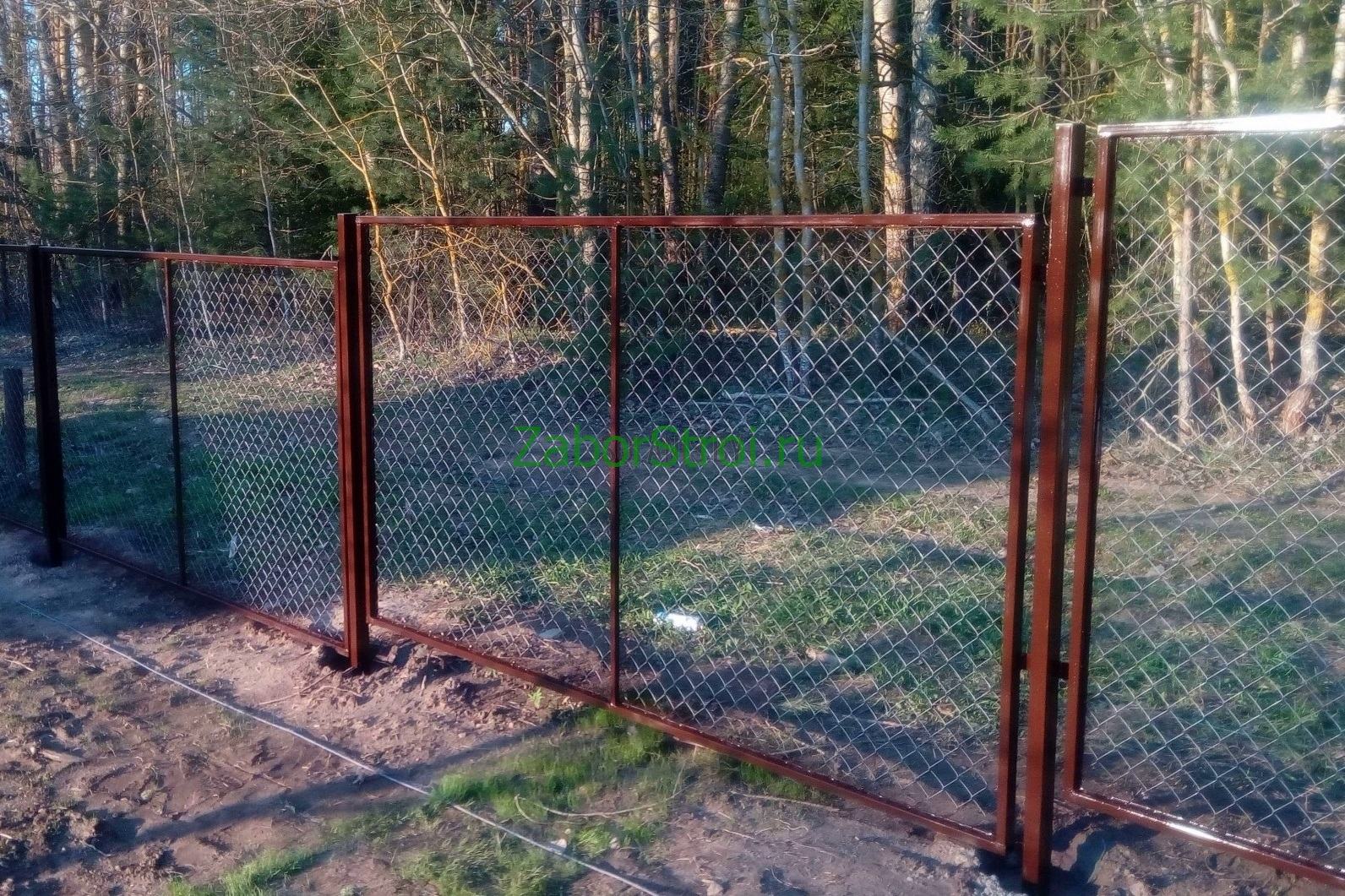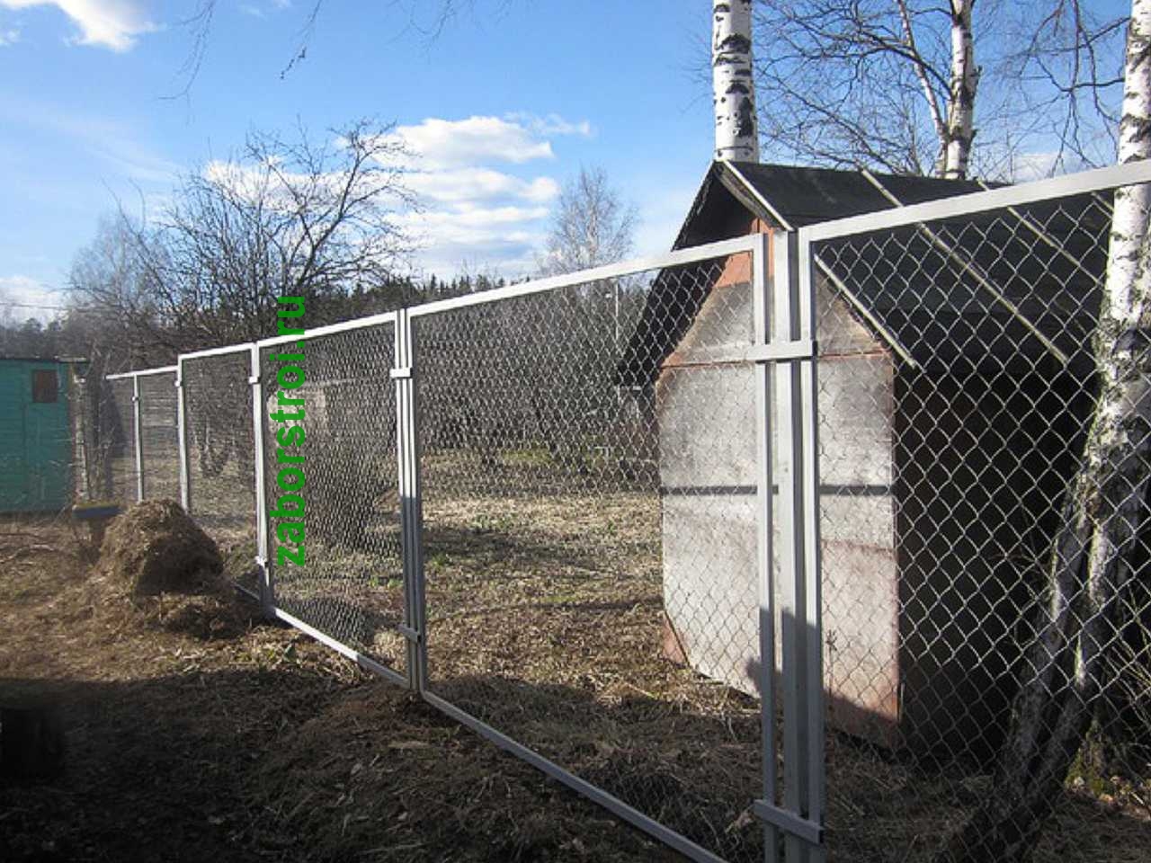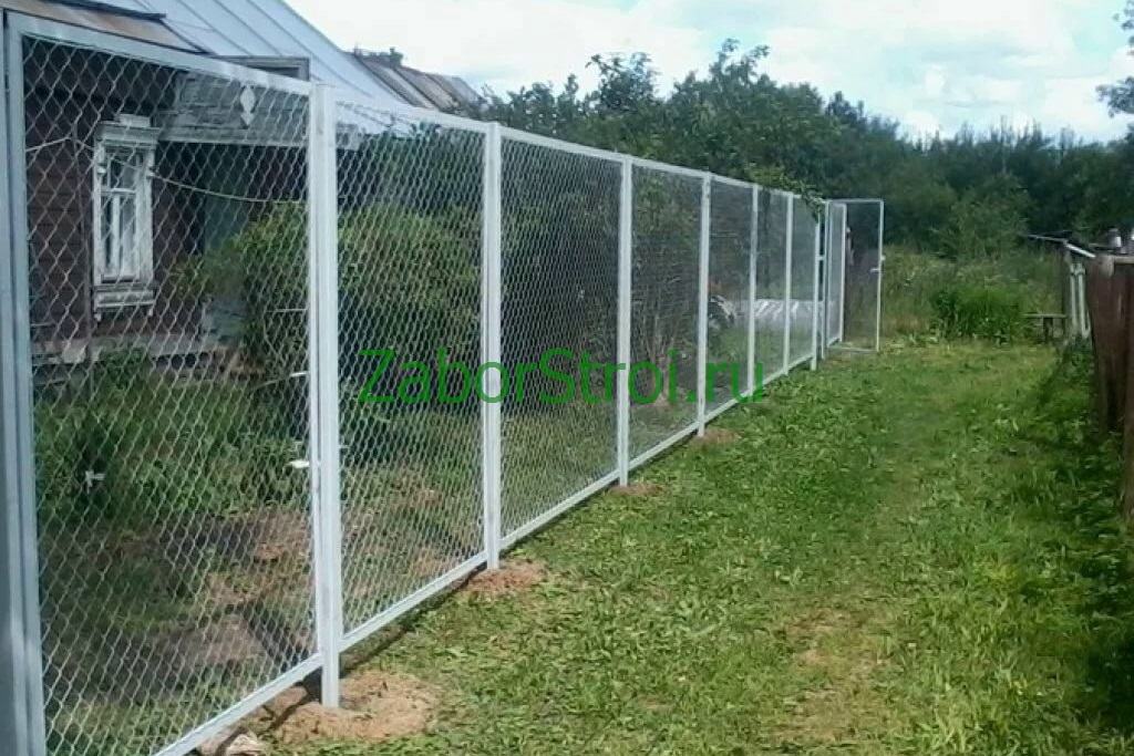 Заборы из сетки рабица в секциях из профиля 58 метров