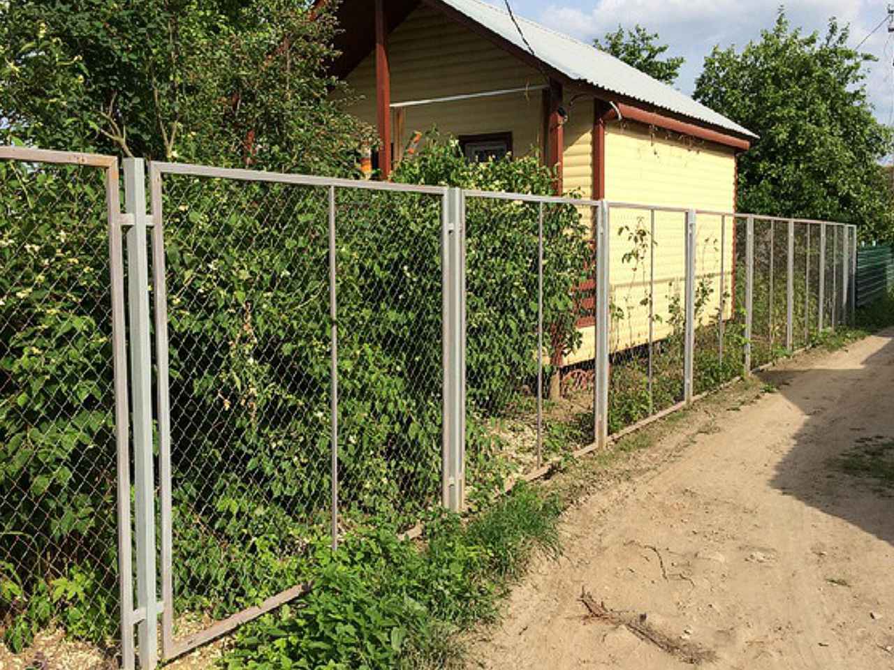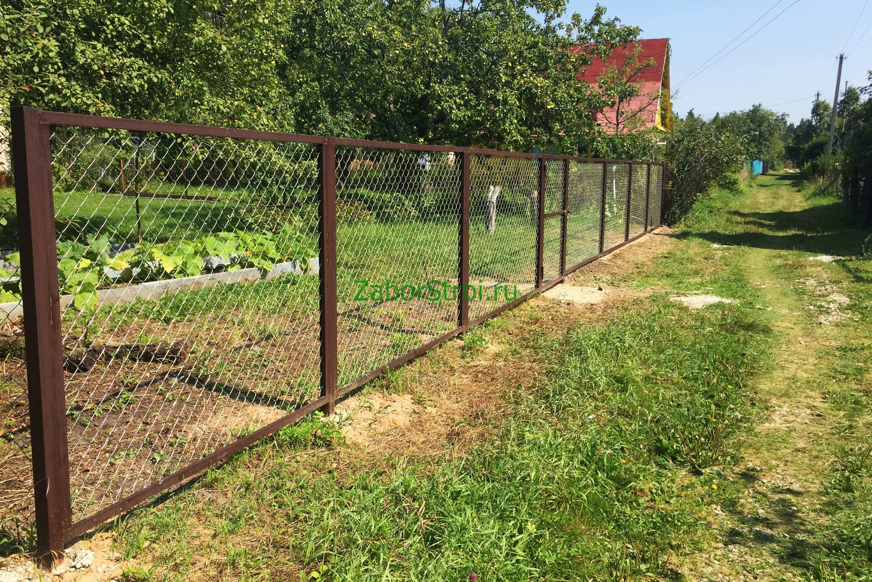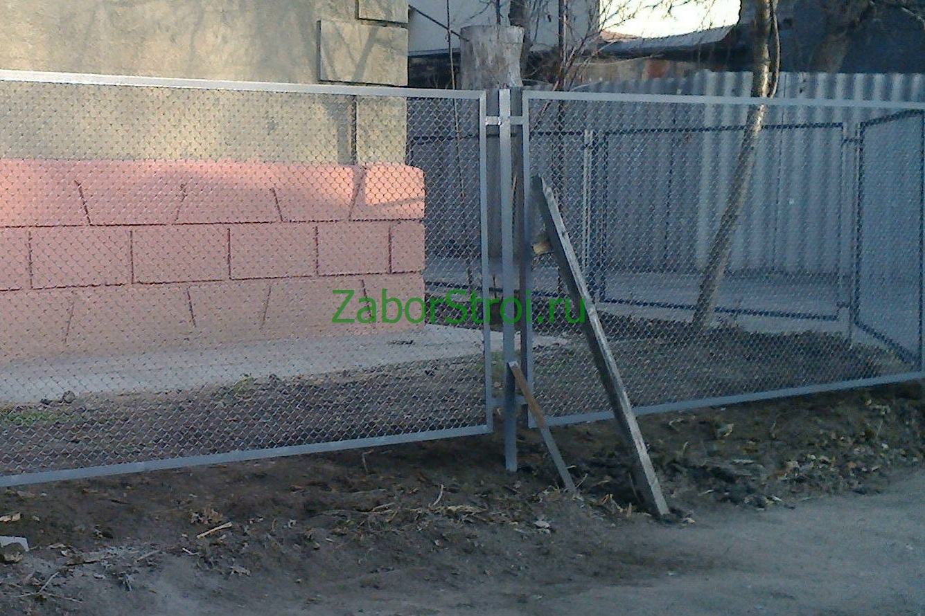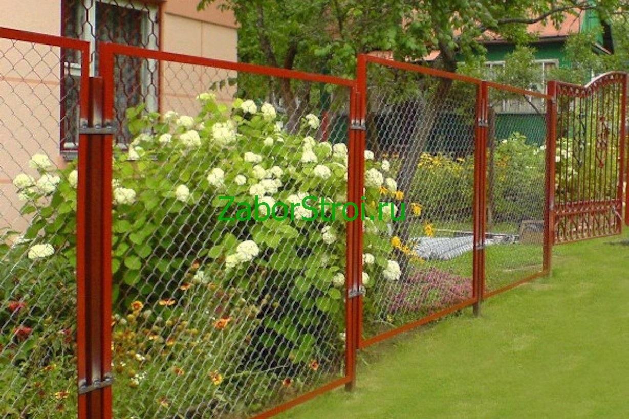 Заборы из сетки рабица в секциях из профиля 58 метров